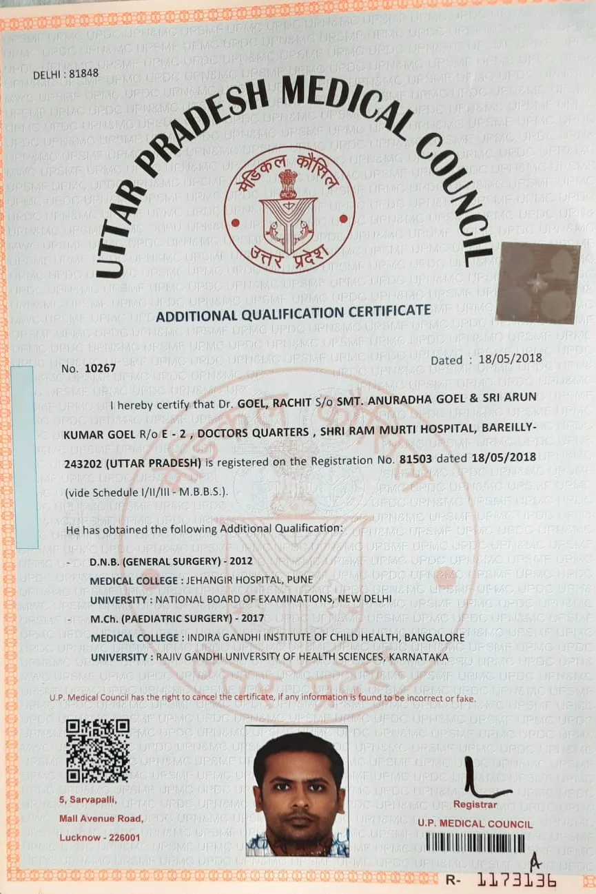 Dr. Rachit completed his MBBS from Government Medical College, Miraj, followed by DNB in General Surgery at Jehangir Hospital, Pune. He then pursued MCh in Pediatric Surgery from the prestigious Indira Gandhi Institute of Child Health, Bangalore.
